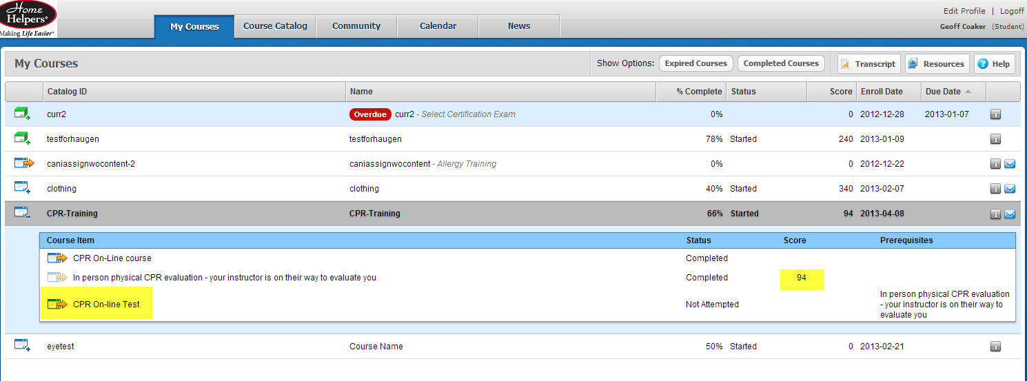 Evaluation Block Item, where the student cannot proceed to the next content item until the instructor physically watches the student provide CPR on our dummy, Annie.